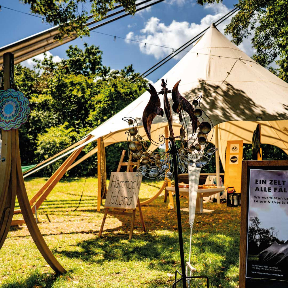 Von der klassischen Hängematten-Ecke bis zum professionellen Zelt-Setup für intime Live-Gigs: unser Team kreiert mit euch atmosphärische Outadoor-Räume.